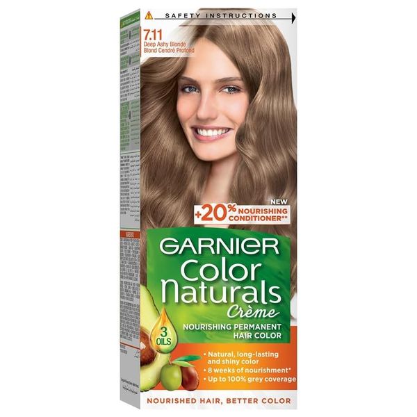 يُقدم صبغة Garnier Color 7.11 Deep Ashy Blonde لون أشقر رمادي غامق طبيعي مع تركيبة كريمية سهلة التطبيق. تحتوي على بلسم مغذٍ وثلاث زيوت للمساعدة في حماية وتنعيم الشعر أثناء الصبغ، وتمنح لوناً ثابتاً يصل إلى 8 أسابيع. اللون دائم ويغطي الشعر الرمادي حتى 100% بلمسة طبيعية، وهو مناسب لمختلف أنواع الشعر.