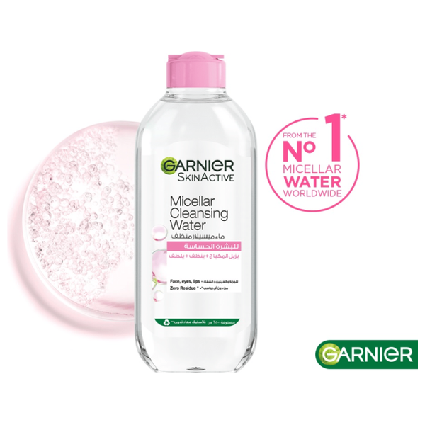 ماء ميسيلار منظف من جارنييه يوفر تنظيفاً لطيفاً وموجهاً للبشرة من الوجه والعينين والشفاه. يزيل المكياج والشوائب بخطوة واحدة بدون الحاجة إلى الشطف. عبوة 400 مل مصممة للاستخدام اليومي ومناسبة للبشرة الحساسة، لتمنح البشرة النضارة والنظافة مع كل استخدام.