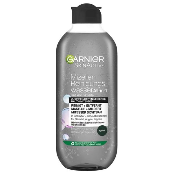 غارنييه سكين أكتيف ميزيلر لتنظيف البشرة All-in-1 مع الفحم النشط ينظّف البشرة، يزيل المكياج، ويطهرها في خطوة واحدة دون الشطف. تركيبته الهلامية تعزز تنظيف الشوائب وتمنح البشرة شعوراً بالانتعاش. مناسب لجميع أنواع البشرة ومثالي للاستخدام اليومي.
