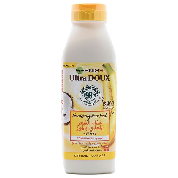 بلسم مغذي بالموز للشعر الجاف، يساعد في تغذية الشعر الجاف، ممزوج بالموز وجوز الهند، تركيبته نباتية بمكونات من أصل طبيعي غني بالعناصر الغذائية لشعر صحي ورائع، قوامه الغني، يمتص على الفور للتغذية ويفك تشابك الشعر بسرعة، لتغذية مكثفة وشعر صحي المظهر، مناسب للشعر الجاف. لنتيجة أفضل استخدمي من بعده كريم غذاء الشعر بالموز.
