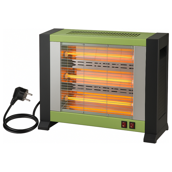 مدفأة كهربائية قوية بقدرة 2000 واط، توفر تدفئة سريعة وفعّالة باستخدام تقنية الأشعة تحت الحمراء الآمنة، تتميز بهيكل معدني متين مقاوم للحرارة، مزودة بمفتاحي تحكم مستقلين للطاقة وسلك كهربائي بطول 2 متر