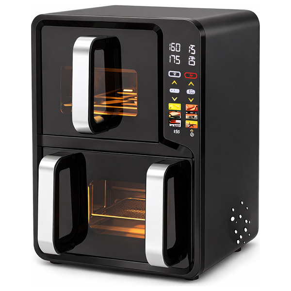 تتيح لك هذه المقلاة الهوائية ذات السلتين بقوة 3000 واط طهي وجبتين في وقت واحد باستخدام تقنية الهواء الساخن للحصول على طعام مقرمش بأقل كمية من الزيت. تتميز بسلتين منفصلتين، إحداهما بسعة 6 لترات والأخرى بسعة 9 لترات، بالإضافة إلى تسخين قوي ولوحة تحكم رقمية سهلة الاستخدام. كما تتميز بتوزيع الهواء الساخن بزاوية 360 درجة لطهي صحي، وتتيح لك ضبط الوقت ودرجة الحرارة لكل سلة على حدة.