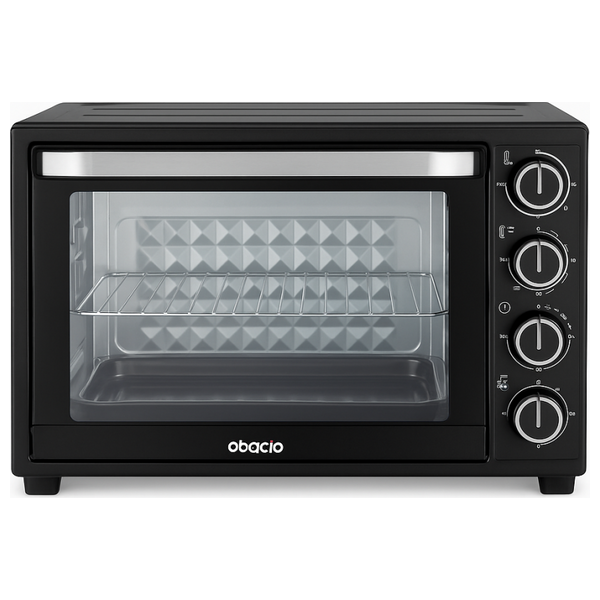 فرن كهربائي متعدد الوظائف بسعة 60 لتر، مثالي للخبز والشوي والتحميص، يتميز بتحكم بدرجة الحرارة حتى 250°، مؤقت تشغيل، ومروحة لتوزيع الحرارة بالتساوي
