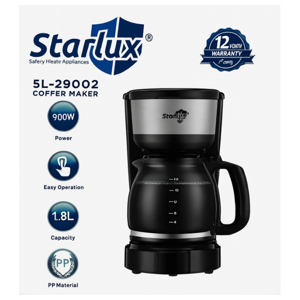 تقدم لك تجربة إعداد قهوة سريعة ومريحة في المنزل، تأتي بقوة 900 واط لتسخين سريع، وإبريق بسعة 1.8 لتر يناسب تحضير عدة أكواب، مع إمكانية التشغيل بلمسة واحدة، الإبريق الشفاف يتيح متابعة مستوى الماء بسهولة، بينما الهيكل المصنوع من مادة PP آمن للاستخدام اليومي