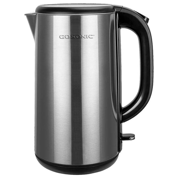 غلاية كهربائية 1.8 لتر من ماركة جوسونك، مصنوعة من الفولاذ المقاوم للصدأ عالي الجودة، بسعة 1.8 لتر، مع مؤشر مرئي لمستوى الماء من الخارج، صمامات حماية من الجفاف والسخونة الزائدة، قدرة كهربائية 1800 واط، وميزة الحماية من التجفيف.