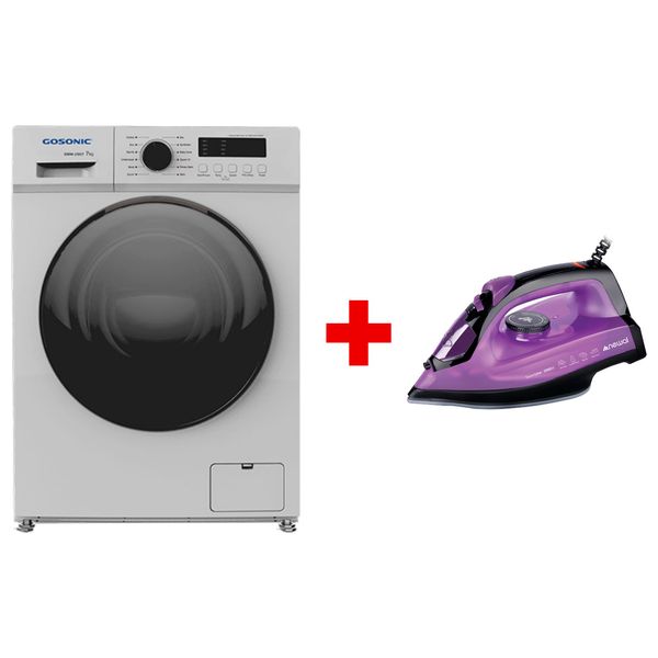 غسالة جوسونيك فتحة امامية - 7 كغم - 1200 دورة بالدقيقة - GWM-2907 - سلفر + مكواة