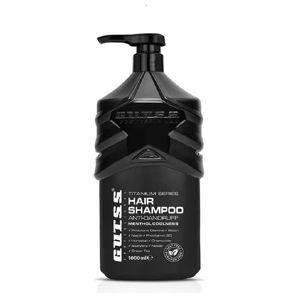 شامبو غتس من سلسلة التيتانيوم للشعر مضاد القشرة يوفر تنظيفاً منعشاً يساعد في السيطرة على القشرة وفروة الرأس. يحتوي على إحساس تبريد بالمنثول ومكونات فعالة مثل بيروكوتون أولامين وبيوتين ونياسين وبرو-فيتامين B5، مع الألوة فيرا والشاي الأخضر لدعم راحة فروة الرأس. مناسب للاستخدام اليومي.