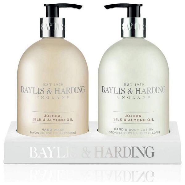 مجموعة تحتوي على لوشن وسائل غسل لليدين بزيت اللوز والجوجوبا, بتركيبة كريمية ولمسة حريرية توفر العناية الكاملة لبشرتك, تنظف بلطف وتغذي البشرة وتتركها ناعمة ومرطبة.