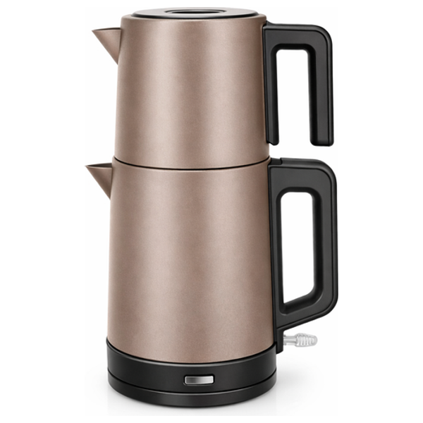اكتشف تخمير الشاي بسهولة مع محضرة شاي هاوسبيرغ الكهربائية المزدوجة الوظائف. تجمع هذه الوحدة عالية الأداء بين قاعدة غلاية كبيرة وإبريق شاي متناسق في الأعلى. تتميز بوظيفة الحفاظ على الحرارة للحفاظ على الدرجة المثالية لساعات، مع هيكل من الفولاذ المقاوم للصدأ ومقابض مقاومة للحرارة، إضافة إلى ميزات أمان مثل الإيقاف التلقائي والحماية من الغليان الجاف.