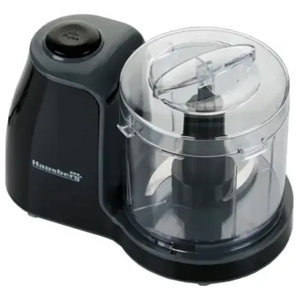 محضرة طعام كهربائية صغيرة مدمجة وسهلة الاستخدام من هاوسبيرغ. تتميز بوعاء سعة 500 مل وشفرة من الفولاذ المقاوم للصدأ ومُحرّك نحاسي ونظام قفل أمان. مناسبة لتقطيع الأعشاب والبصل والثوم والمكسرات وأكثر. الأجزاء التي تلامس الطعام قابلة للغسل في غسالة الصحون. الطاقة: 100 واط، الجهد: 220–240 فولت، التردد: 50/60 هرتز.
