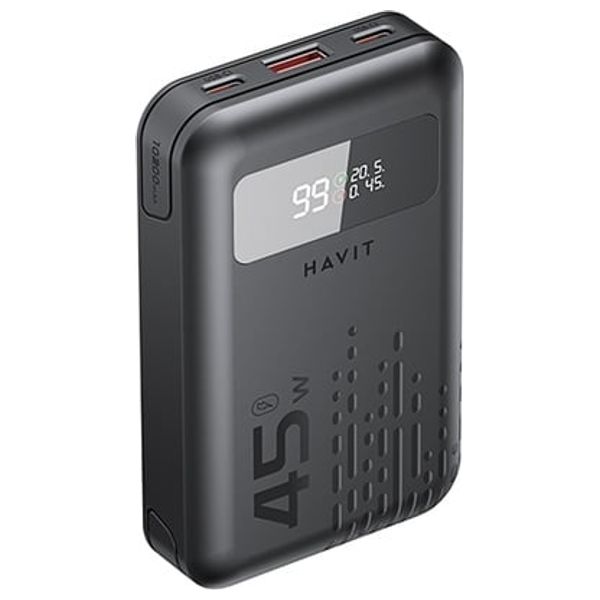 باور بانك هافيت PB5211 بسعة 10200mAh وقوة 45 واط يوفر لك حل شحن قوي ومحمول لجميع أجهزتك. بفضل خرج الشحن السريع 45 واط، يمكنه شحن الهواتف الذكية والأجهزة اللوحية وحتى اللابتوبات بكفاءة عالية. السعة الكبيرة تمنحك عدة شحنات أثناء التنقل، بينما يغنيك وجود كيبلين مدمجين (USB-C وLightning) عن حمل أي كيبل إضافي، مما يجعله مثاليًا للسفر والاستخدام اليومي. يأتي بتصميم أسود أنيق وميزات أمان مثل حماية الشحن الزائد وقصر الدائرة للحفاظ على أجهزتك آمنة.