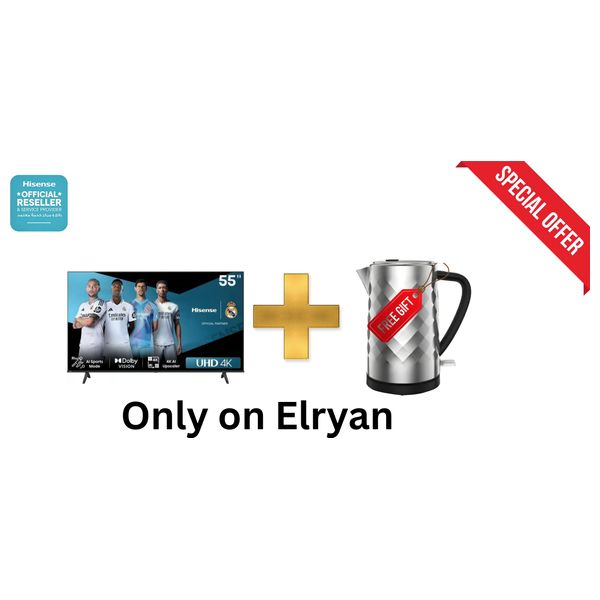 شاشة هايسنس 55-انج فئة A62QS - سمارت - 4K - LED - 60 هيرتز - اصدار 2026 + غلاية هايسنس - سعة 1.7 لتر - فلتر قابل للإزالة - H17KSSS2 - سلفر