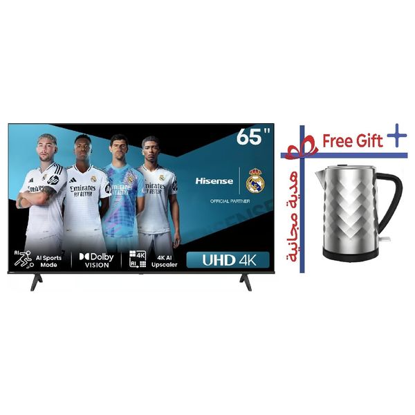 شاشة هايسنس 65-انج فئة A62QS - سمارت - 4K - LED - إصدار 2026 - 60 هيرتز + غلاية هايسنس - سعة 1.7 لتر - فلتر قابل للإزالة - H17KSSS2 - سلفر