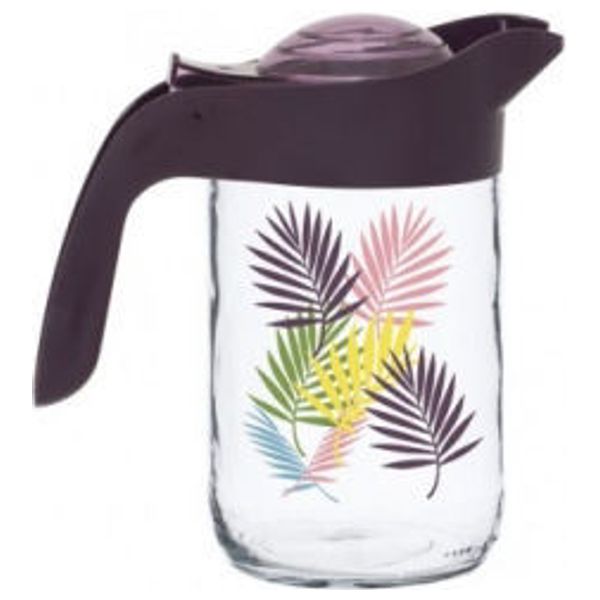دورق زجاجي بغطاء من البلاستك ومزينة برسوم لأوراق الشجر. بسعة 650 مل.