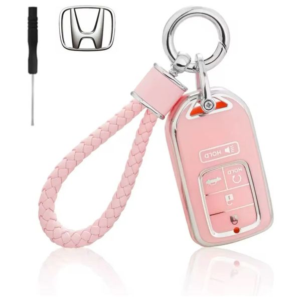 غطاء ELOHEI لمفتاح هوندا – حماية كاملة من TPU لموديلات أكورد، CR-V، سيفيك، بايلوت، أوديسي، باسبورت (2015-2024) – لون وردي