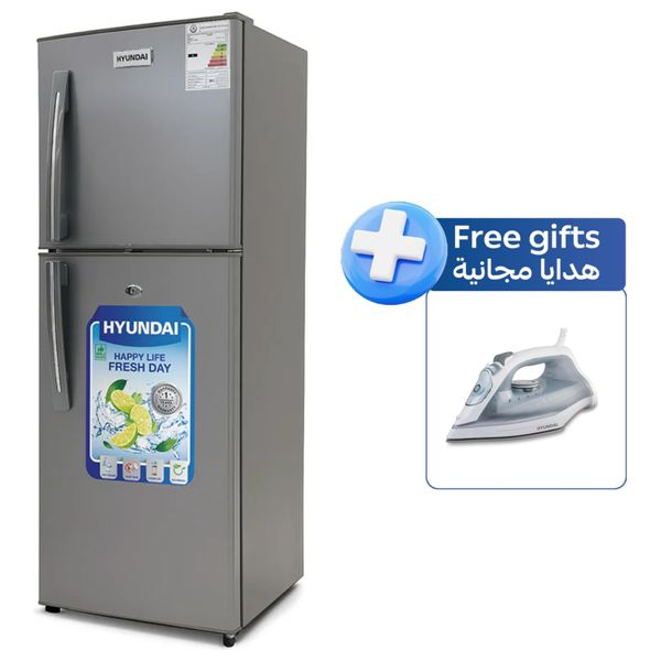 تجمع حزمة هيونداي HBM-800 ثلاجة ذات مجمد علوي تقليدية فضية ومكواة بخارية من نفس السلسلة لتلبية احتياجات المنزل. تتميز الثلاجة بسعة 8 قدم وأبعاد 46 × 48 × 126 سم وتعمل بتيار 1.0 أمبير وبنظام التبريد R-600A للحفاظ على الطعام طازجاً في المنازل العراقية. الحزمة مصممة لتوفير مساحة وتلبية احتياجات الكي اليومية.