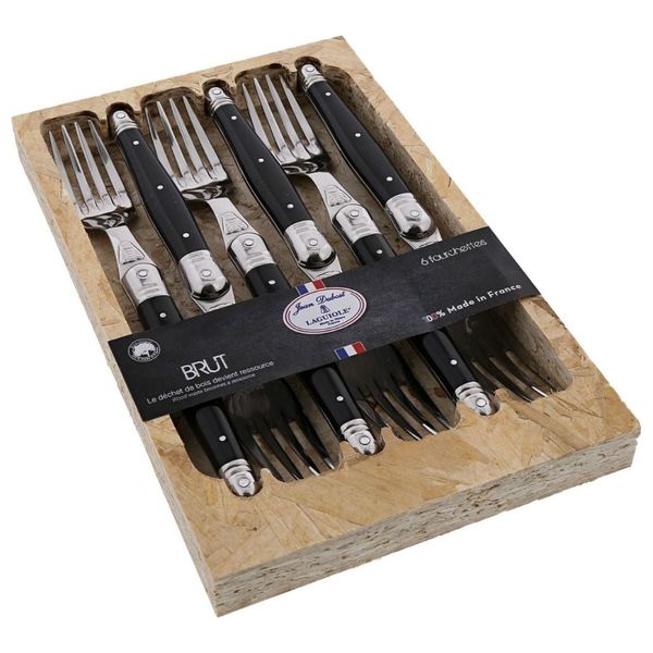 مجموعة جون دوبوست المكوّنة من ست شوكات بطراز لاغيويل وبمقبض ABS أسود تجمع بين المتانة والأناقة. كل شوكة تجمع بين رأس من الفولاذ المقاوم للصدأ ومقبض ABS أسود ليمنحك استخدامًا يوميًا مريحًا ومظهرًا راقيًا للمائدة. تأتي المجموعة في صندوق مفتوح من OSB يحمل علامة Brut Range، وتعبّر عن الحرفية الفرنسية