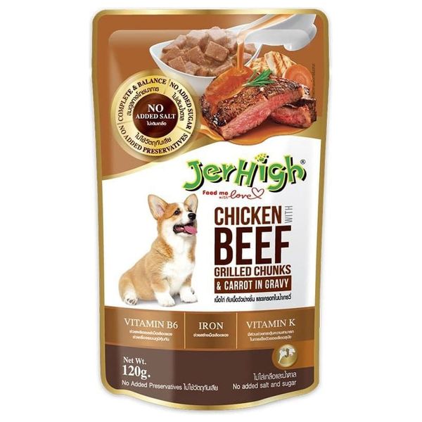 مزيج شهي من الدجاج، اللحم والخضروات، غني بفيتامين B6، K، والحديد. خالٍ من الملح والسكر والمواد الحافظة، يدعم صحة كلبك ويجعل وقت الطعام ممتعًا وآمنًا.