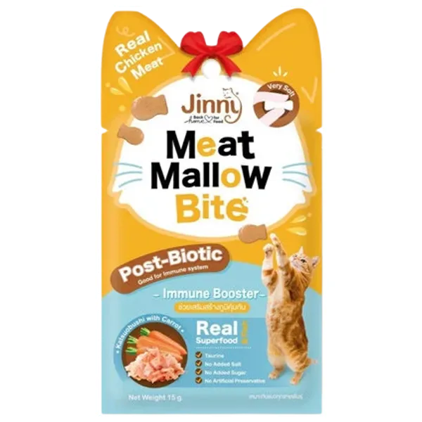 مكافأة قطط مقطعة الحجم مصممة لتعزيز المناعة. مع كاتسوأوبوشي (رقائق سمك البونتو) وجزر ولحم دجاج حقيقي، تركيبة ما بعد البروبيوتيك تدعم صحة الأمعاء وتمنح البروتين اللذيذ
