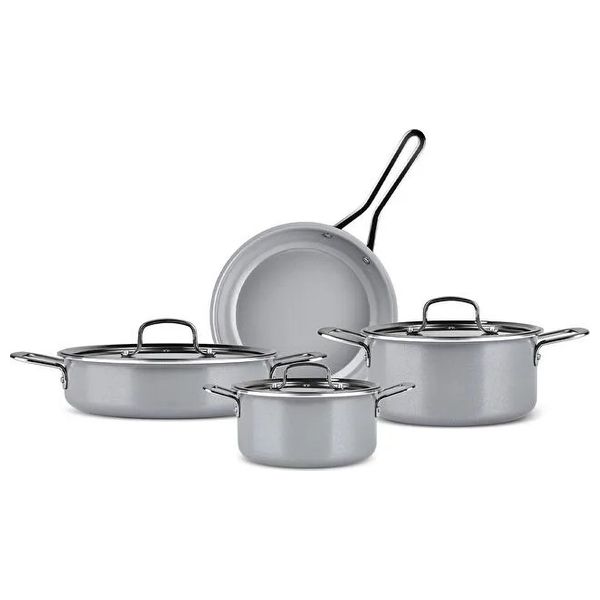 طقم كاراجا سويس كريستال 7 قطع، غير لاصق وخالٍ من المواد الضارة مثل PFAS، يتيح الطهي بسهولة وبدون زيت، مع تنظيف سهل بالماء أو قطعة قماش، يحتوي الطقم على: قدر 18 سم (2.4 لتر)، قدر 22 سم (4.0 لتر)، قدر كرنّياريك 26 سم (3.7 لتر)، ومقلاة 26 سم (2.1 لتر)