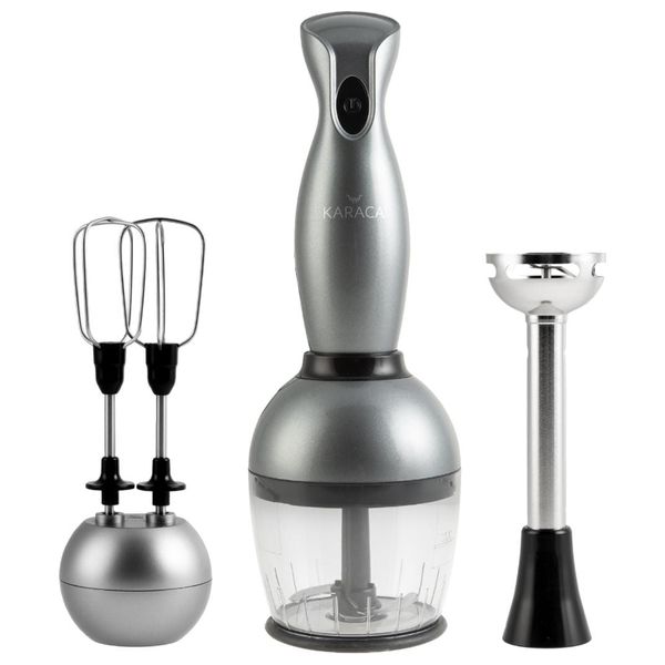 مجموعة خلاط كاراكا برو ميدي 3 قطع بقوة 550 واط، مع جسم قابل للفصل وملحقات سهلة التنظيف، تشمل مضارب خفق ومرفق تقطيع، مثالية للخلط، الخفق، والتقطيع بدقة وسهولة