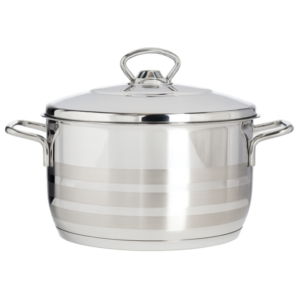 مصنوع من الستانلس ستيل المقاوم للصدأ مع غطاء محكم ومقابض جانبية مريحة، يحافظ على الحرارة ويوزعها بالتساوي، مناسب لجميع أنواع المواقد غاز، كهرباء، سيراميك