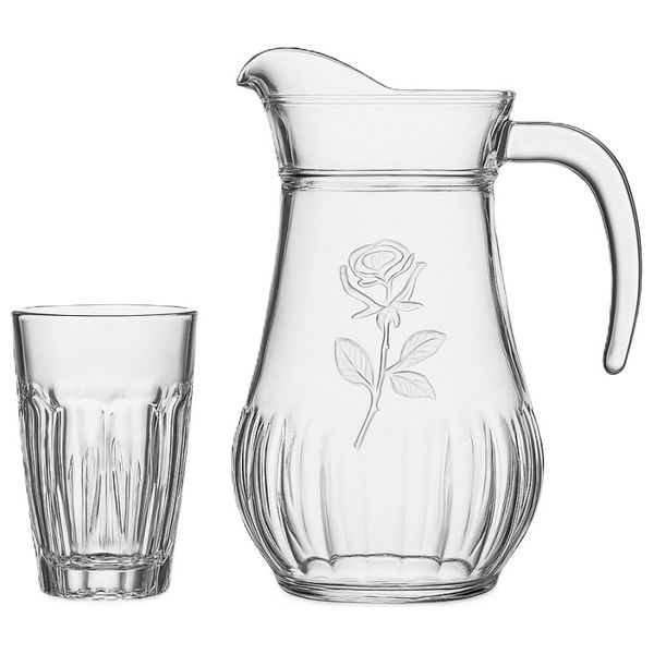 مجموعة أنيقة من 6 أكواب زجاجية عالية الجودة مع نقش زخرفي كلاسيكي يضفي لمسة راقية على سفرتك، مثالي لتقديم العصائر والمشروبات الباردة