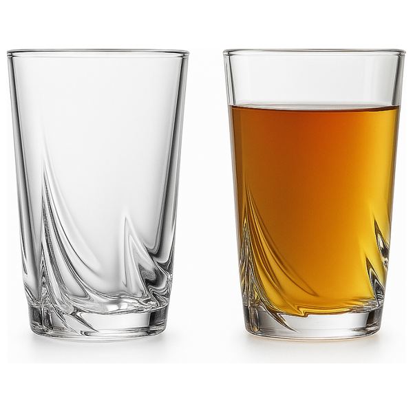 زجاج شفاف متين بتصميم مضلع حديث، مثالي لتقديم العصائر والمشروبات اليومية، مناسب للاستخدام اليومي أو الضيافة