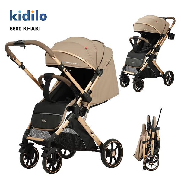 عربة كيديلو 6600 باللون الخاكي تتميز بإطار ألمنيوم خفيف الوزن، وطي بزر واحد، ومقعد قابل للإمالة بعدة وضعيات. تضم مظلة مبطنة وأحزمة أمان رباعية النقاط وفرامل مركزي للعجلات الخلفية ومقبض قابل للتعديل للدفع للأمام والخلف. كما تتضمن سلة تخزين ومظلة حماية من الطقس لرحلات يومية.