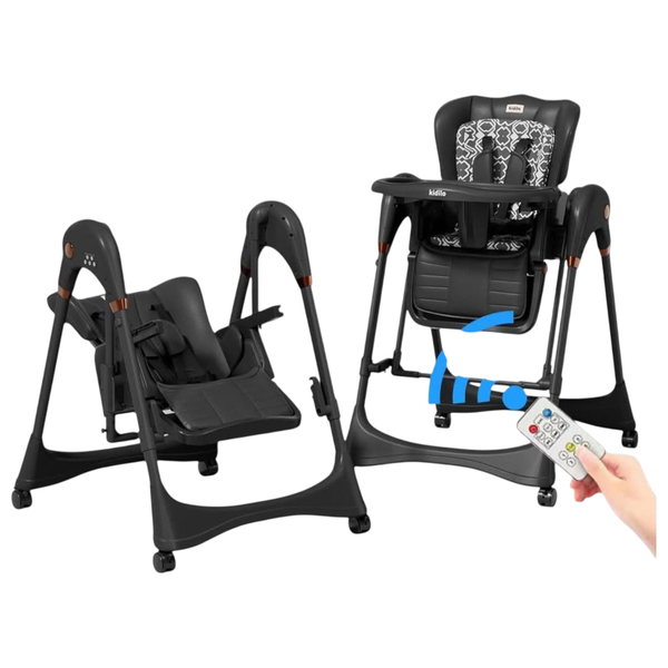 متعدد الوظائف يمكن تحويله بسهولة بين كرسي طعام وكرسي هزاز إلكتروني، يحتوي على خاصية البلوتوث لتشغيل الموسيقى أو الأصوات لتهدئة الطفل، يأتي مع ريموت كنترول للتحكم في وظائفه عن بعد، مصنوع من مواد عالية الجودة ومتينة، يوفر وضعيات جلوس مختلفة ومقعد مريح، مناسب للأطفال من عمر 0 إلى 4 سنوات تقريبًا.