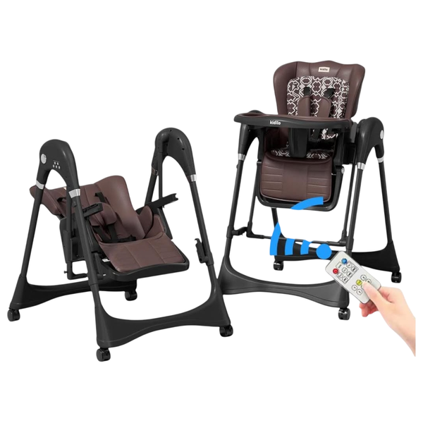 متعدد الوظائف يمكن تحويله بسهولة بين كرسي طعام وكرسي هزاز إلكتروني، يحتوي على خاصية البلوتوث لتشغيل الموسيقى أو الأصوات لتهدئة الطفل، يأتي مع ريموت كنترول للتحكم في وظائفه عن بعد، مصنوع من مواد عالية الجودة ومتينة، يوفر وضعيات جلوس مختلفة ومقعد مريح، مناسب للأطفال من عمر 0 إلى 4 سنوات تقريبًا.