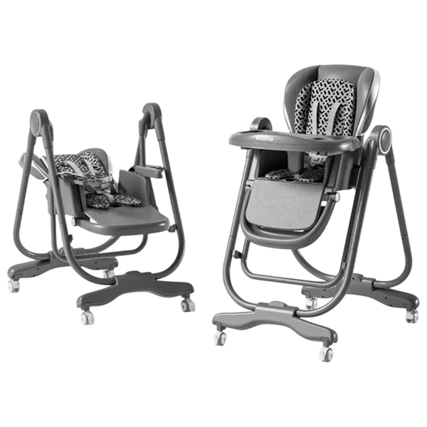 كرسي طعام متكامل يجمع بين وظيفة الكرسي وتُرجوحة للأطفال من الولادة وحتى نحو 3 سنوات. يتميز بمسند ظهر متعدد الوضعيات للجلوس أو الاستلقاء أو النوم، وإمكانية تعديل الارتفاع ليتماشى مع ارتفاع الطاولة. حزام أمان خماسي النقاط، وعجلات مع قفل لتثبيت الكرسي، وطاولة طعام قابلة للإزالة لتسهيل التنظيف، وهيكل قابل للطي لتوفير المساحة