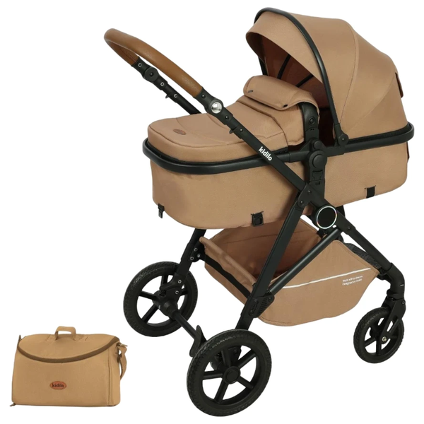 عربة كيديلو K08 عربة أطفال خفيفة الوزن ومتعددة الاستخدامات صممت للأهل المتنقلين. تصميمها 2 في 1 يسمح بالتحول من وضع النوم/السرير إلى وضع الجلوس مع مقعد مزدوج الوجه. يمكن للطفل أن يواجه الوالدين أو يستكشف المحيط. الهيكل الألومنيوم القوي يخفض الوزن إلى نحو 7.9 كجم، مع عجلات دوارة 360 درجة ونظام تعليق لركوب مريح. المظلة الكبيرة تُوفر حماية من الشمس وتحتوي على نافذة للمراقبة. سلة التخزين الواسعة وحقيبة الأم المتضمنة تعززان التنظيم أثناء السفر. طي بيد واحدة سهل التخزين والنقل، ومناسب للسفر حسب سياسات شركات الطيران. مناسبة من الولادة حتى حوالي 3 سنوات، وتصلح للاستخدام اليومي.