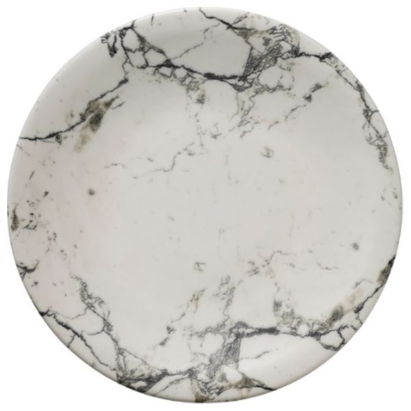 يتميز بتصميم مستوحى من الرخام على سطح بورسلين أبيض حليبي، بقياس 25 سم، مناسب لتقديم المقبلات والحلويات أو الأطباق الرئيسية