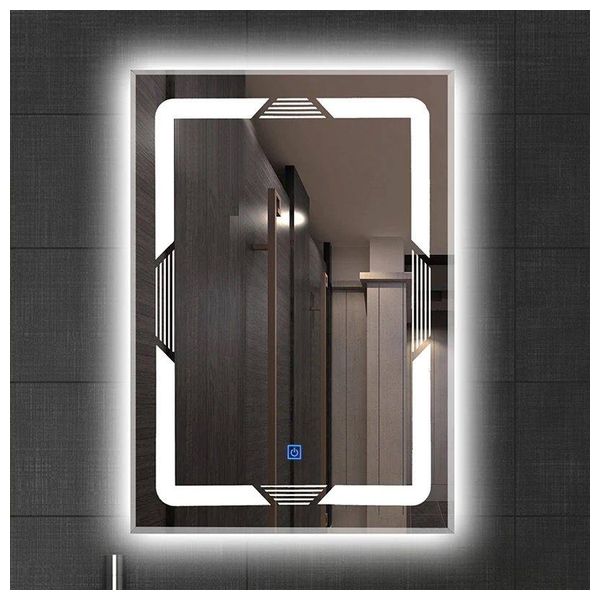 مرآة حمَام لازورد بإطار LED هندسي تجمع بين التصميم العصري وفوائد الإضاءة المريحة. سطح الزجاج عالي الوضوح يعكس صورة دقيقة بدون تشوه، وتتيح ثلاث درجات للإضاءة: الأبيض، الشمسي، والقمري لتناسب مكياجك أو روتين العناية اليومي. زر اللمس أسفل المرآة يتحكم بالألوان، وتحتفظ المرآة باللون الأخير حتى عند انقطاع الكهرباء