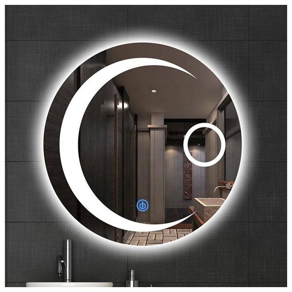 مرآة حمام LED دائرية أنيقة من لازورد بمقاس 60×60 سم، بإطار LED على شكل هلال مع دائرة داخلية، توفر ثلاث درجات للضوء (بارد، دافئ، طبيعي) مع زر لمس ذكي لضبط الإضاءة حسب الحاجة للمكياج أو الحلاقة أو الاستخدام اليومي. زجاج عالي الجودة يوفر توزيع ضوئي متساوٍ، مع تثبيت جداري آمن، مثالية للحمامات العصرية والفنادق والديكورات