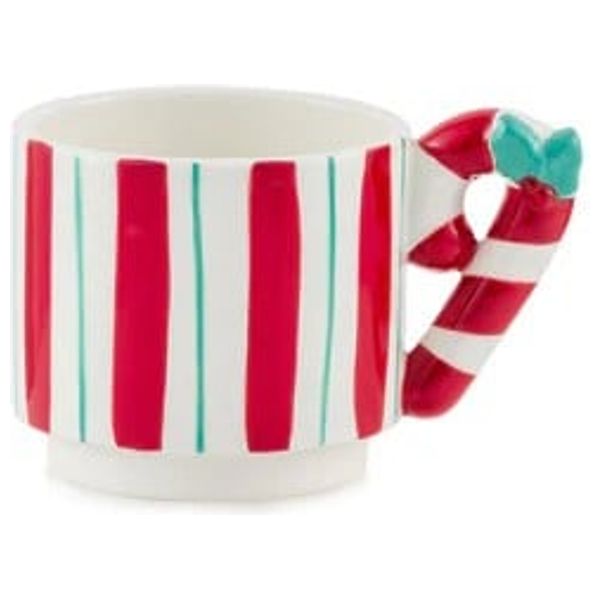 كوب كرسمس بتصميم سيراميك أحمر مخطط ومقبض على شكل حلوى، ليضيف لمسة مرحة للمشروبات خلال العطلة