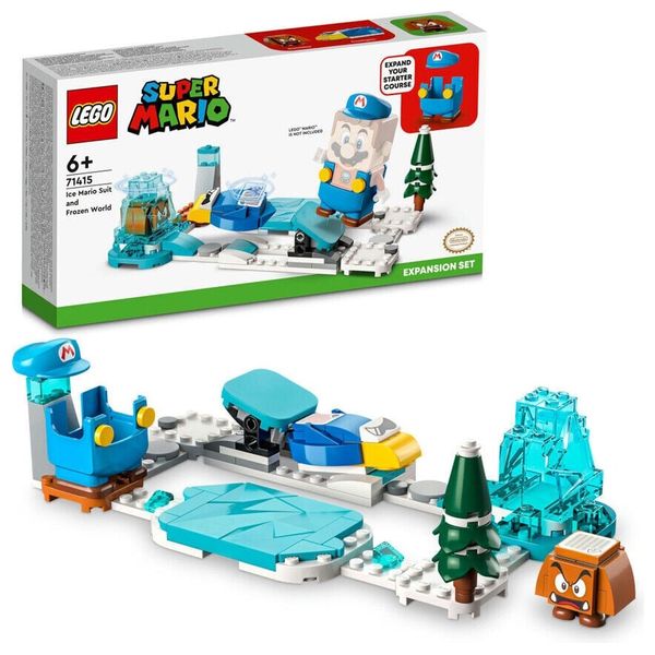 ارتقِ بتجربة اللعب التفاعلي مع LEGO® Super Mario™: Ice Mario Suit & Frozen World Expansion Set (71415)، التي تضيف بيئة متجمدة جديدة إلى عالم LEGO Super Mario. تحتوي المجموعة على بدلة Ice Mario المخصصة، والتي عند تجهيزها مع شخصية LEGO Mario™ أو LEGO Luigi™ أو LEGO Peach™ (غير مُضمنة)، تُفعّل تفاعلات رقمية فريدة على شاشة الشخصية، مثل رسم كرة جليدية ومؤثرات صوتية للتجميد، مما يُضيف بعدًا استراتيجيًا جديدًا إلى مستوياتك المخصصة.تتميز المجموعة بـ منظر طبيعي متجمد قابل للبناء، حيث يمكن للاعبين التزلج على الجليد لجمع العملات الرقمية والتفاعل مع الأعداء الكلاسيكيين. من مُطلق Cooligan المنزلق إلى Goomba المخفي داخل كتلة جليدية قابلة للكسر، صُممت المجموعة لاختبار توقيت اللاعب ودقته. إنها هدية مثالية للأطفال الذين يمتلكون مجموعة Starter Course ويرغبون في توسيع مغامراتهم في Frosty Frontier.