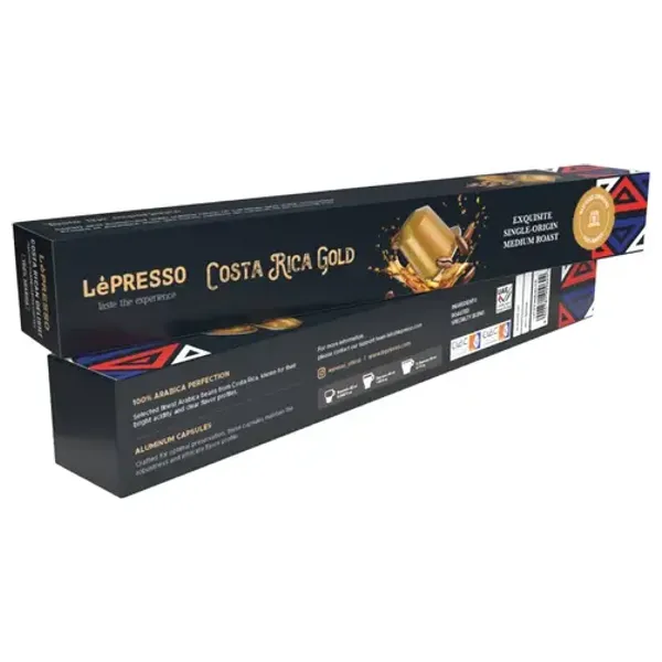 كبسولات LePresso لماكينات نسبريسو – كراميل وشوكولاتة داكنةاستمتع بنكهات القهوة الفاخرة القادمة مباشرة من كوستاريكا! كل كبسولة من LePresso مصنوعة من الألمنيوم ومليئة بمزيج من الكراميل الغني والشوكولاتة الداكنة.100% أرابيكاتحميص متوسط10 كبسولات ذهبية لكل عبوة
