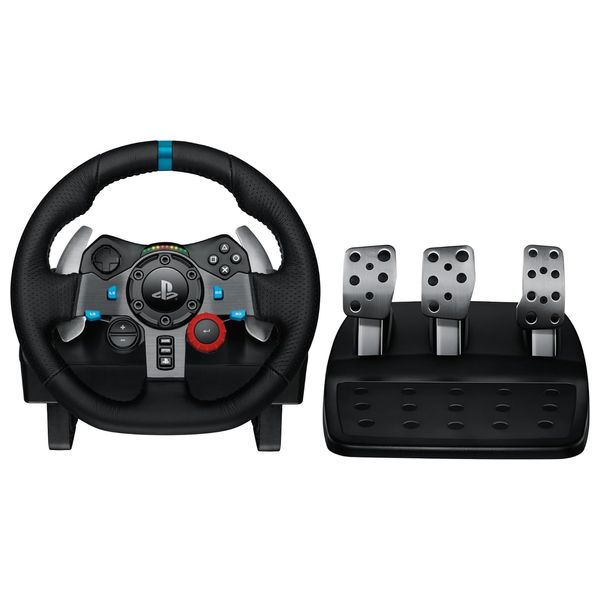 عجلة قيادة سباقات من لوجيتك G29 Driving Force مصممة لأجهزة PlayStation 4/5 وPC. توفر توجيهًا واقعيًا بفضل التغذية الراجعة القوية ذات المحركين، مع دوران يصل إلى 900 درجة، دواسات أرضية ثلاثية (المسرع، الفرامل، القابض)، ومبدلات ناقل من الفولاذ المقاوم للصدأ، ومقبض مطاطي مريح. متوافقة مع معظم ألعاب المحاكاة والسباقات.