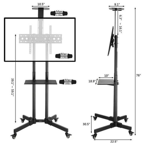 طاولة تلفاز بعجلات مصنوعة من الفولاذ مزودة بأربع عجلات لسهولة الحركة. تناسب شاشات التلفاز من 37 إلى 70 بوصة، بأبعاد 66×180×90 سم، مع إمكانية ضبط الميلان والارتفاع لتوفير أفضل زاوية مشاهدة وراحة