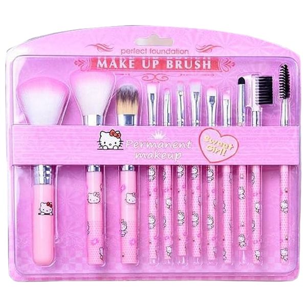 مجموعة فرش مكياج هالو كيتي مقبض الفرشاة مصنوع من الخشب الصلب الطبيعي. فرشاة الألومنيوم. تتكون مجموعة فرش الماكياج من: