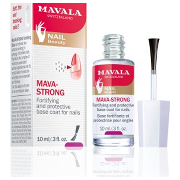 مافا سترونج من مفالا هو كناية عن طبقة أساسية وقائية تستعيد صحة الاظافر وقوتها .يتكون مافا سترونج من مكونات نشطة .خاصة زيت شجرة الشاي الأساسي ,فيتامين E,الكيراتين المتحلل بالماء والاحماض الامينية ,يقوم بتقوية الاظافر وحمايتها في خطوة واحدة