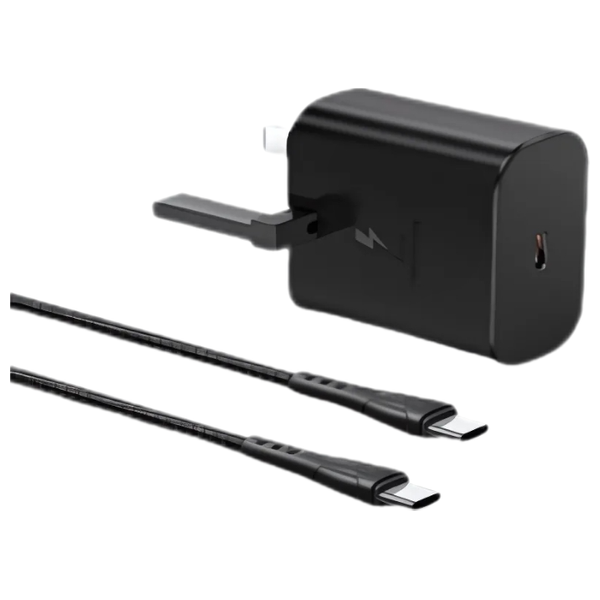 شاحن سريع بقدرة 25 واط مع منفذ USB-C واحد، مصمم لتوفير شحن فعّال وآمن للأجهزة الحديثة، ويأتي مع كابل USB-C إلى USB-C بطول عملي للاستخدام اليومي.المميزات:قوة إخراج 25 واط لشحن سريع وموثوق.منفذ USB-C واحد (1C) للتوافق الحديث.يدعم تقنيات الشحن السريع مثل PD وPPS.جهد إدخال عالمي 100–240 فولت بتردد 50/60 هرتز.مناسب لشحن الهواتف الذكية، الأجهزة اللوحية، وأجهزة USB-C المتوافقة.كابل USB-C إلى USB-C بطول 1.2 متر للشحن ونقل البيانات.متوافق تمامًا مع الشاحن بقدرة 25 واط ومعظم أجهزة USB-C.