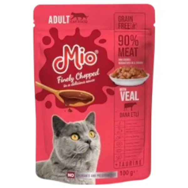 المنتج يحتوي على لحوم ومنتجاتها بقري 5٪، حبوب ومعادن، مع إضافات تكنولوجية مثل عوامل الهلام والمكثفات. التحليل الغذائي يشمل بروتين خام 8.4٪، دهون خام 6٪، ألياف خام 0.8٪، رماد خام 3٪، ورطوبة 80٪. كما يحتوي على مضافات غذائية من فيتامين A بجرعة 1200 وحدة /كجم، فيتامين D₃ بجرعة 70 وحدة/كجم، وفيتامين E بجرعة 3.5 مجم/كجم