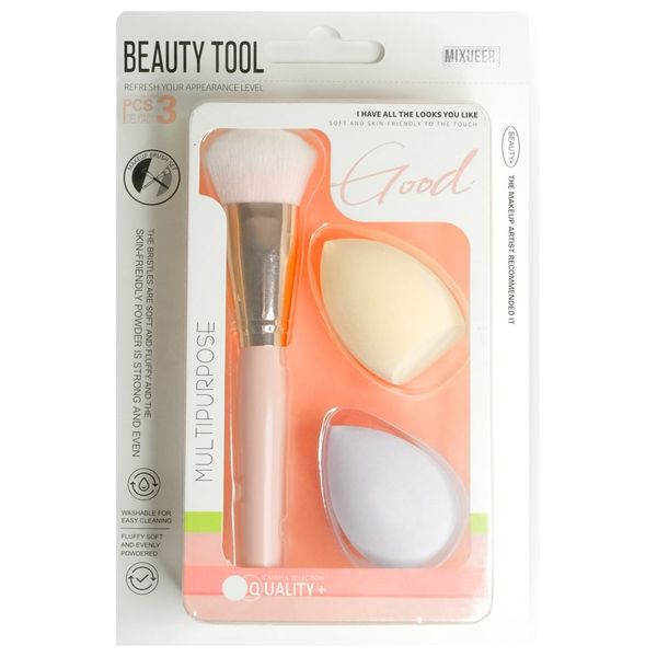 | المحتويات: | فرشاة مكياج واحدة، إسفنجتان مكياج |