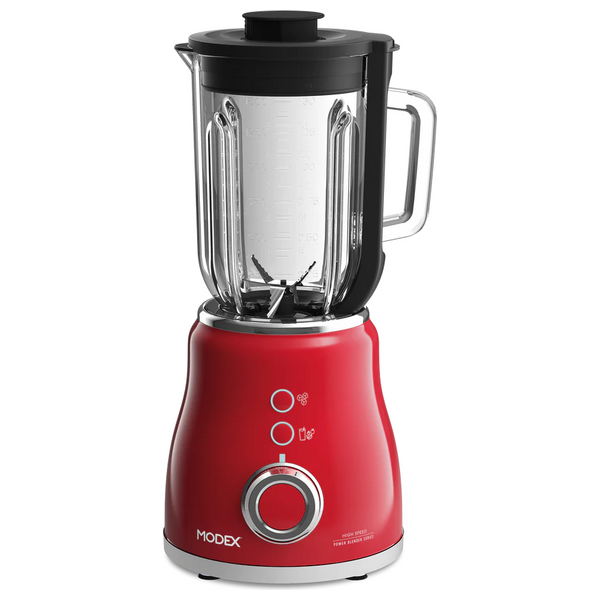 خلاط مودكس بقوة 1000 واط يأتي بوعاء زجاجي سعة 1.5 لتر لخلط العصائر والصلصات وغير ذلك. يوفر الجهاز تحكماً بسرعة بلا خطوات مع مؤشر LED ساطع. يتضمن وظائف للعصائر وتكسير الثلج، ويشمل كوب قياس صغير للتحضير بدقة.