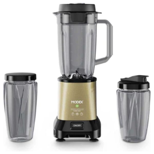 يقدم مودكس 3ان1 نوتري بلندر مزيجاً من القوة والمرونة للخلط اليومي. محرك بقوة 1200 واط يوفر نتائج ناعمة بسرعة تصل إلى 28,000 دورة/دقيقة، وبسعة 1.5 لتر لاحتواء حصص العائلة. يأتي مع أكواب بسعات 0.9 لتر و0.7 لتر مع أغطية لسهولة الحصص. شفرات تريتيانيوم بتصميم سداسي وقفل أمان يضمنان أداءً متانة وموثوقية في عمل العصائر، التكسير بالثلج، الحساء وخليطات النوتري.