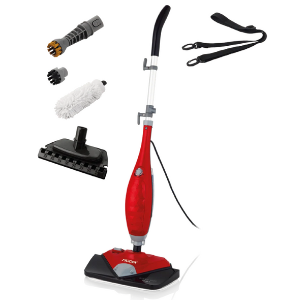 تقدم مكنسة البخار مودكس تنظيفًا فعالاً وسريعاً بفضل قوة 1280 واط وسعة خزان 0.5 لتر. يتميز الجهاز بسرعة تسخين عالية، حيث يكون جاهزًا للعمل خلال 30 ثانية فقط. يعمل البخار على تفكيك الأوساخ وإزالة البكتيريا، مما يجعل الأسطح نظيفة ومعقمة دون الحاجة للمواد الكيميائية. التحكم بتدفق البخار يتم بسهولة عبر المقبض، واللون الأحمر العصري يضيف لمسة جمالية للمطبخ أو المنزل.