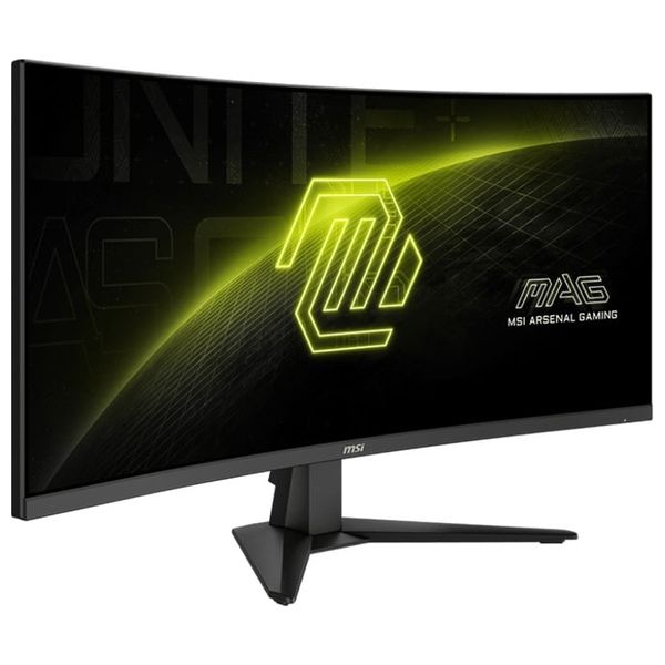 شاشة الألعاب MSI MAG 346CQ مقاس 34 بوصة – دقة UWQHD 3440×1440، معدل تحديث 180Hz، Adaptive-Sync، منافذ HDMI و DisplayPort، قابلة للتركيب على الحائط VESA، قابلية الإمالة وتعديل الارتفاع، سماعات مدمجة، زمن استجابة 1ms، أسود